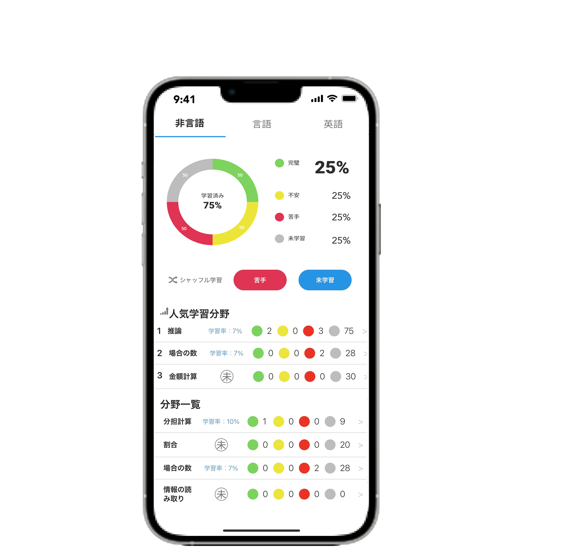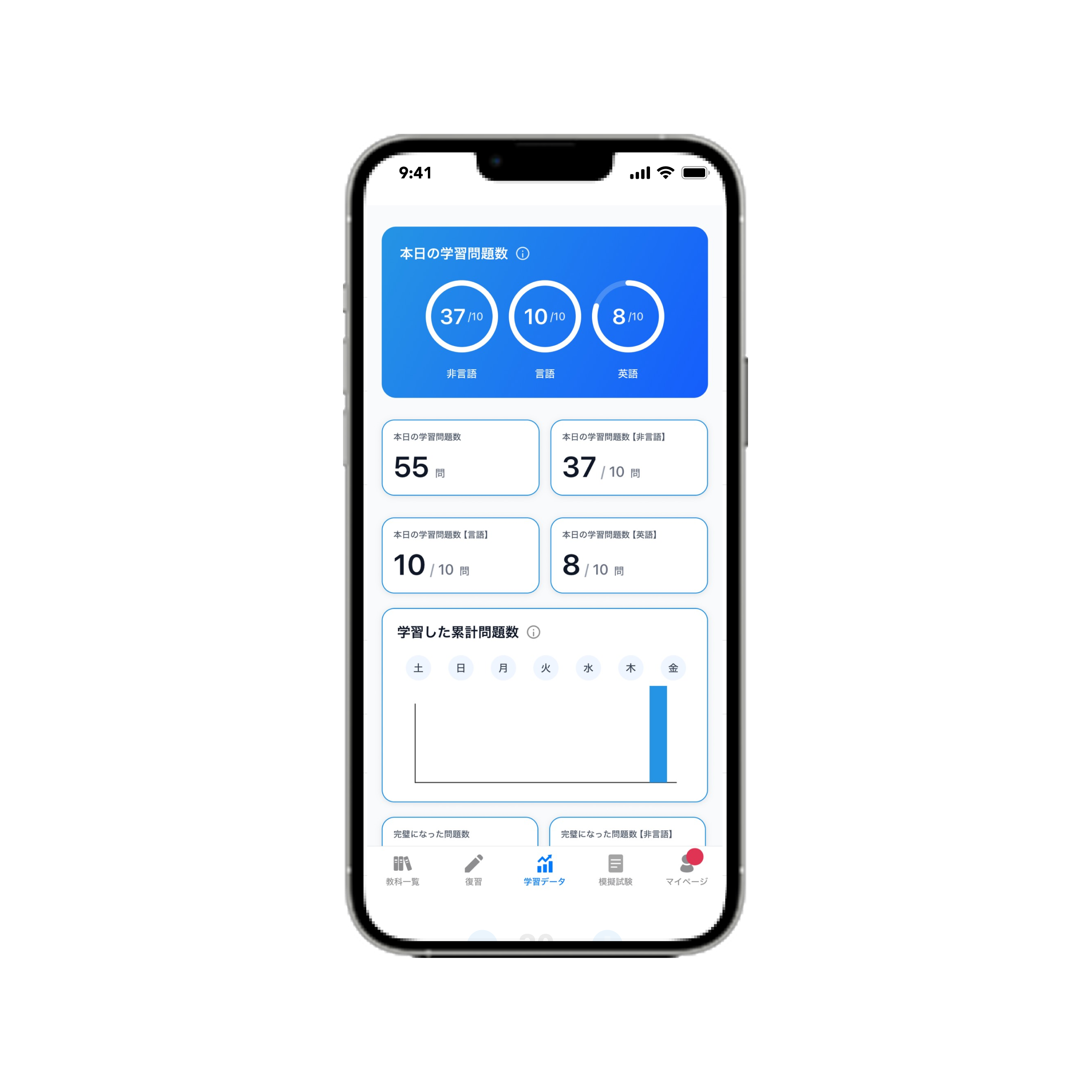 自分の学習進捗をまとめて確認出来るから、 毎日使いたくなる!